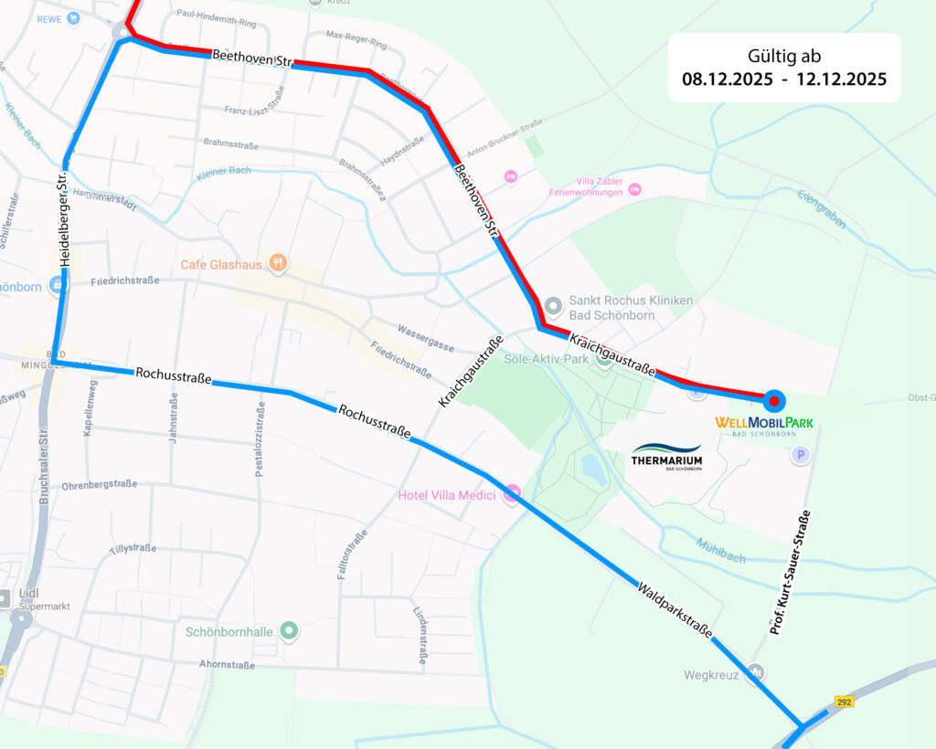 Wichtiger Hinweis: Bauarbeiten Kraichgaustraße und Verlagerung WellMobilPark