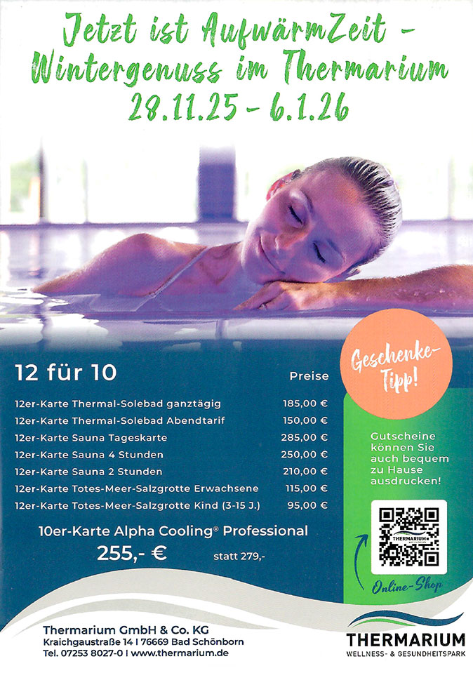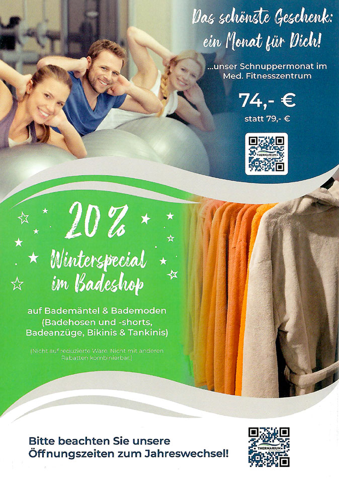 Während der Öffnungszeiten des Thermariums stehen die Toiletten kostenlos zur Verfügung (im Foyer des Thermariums beim Restaurant).
